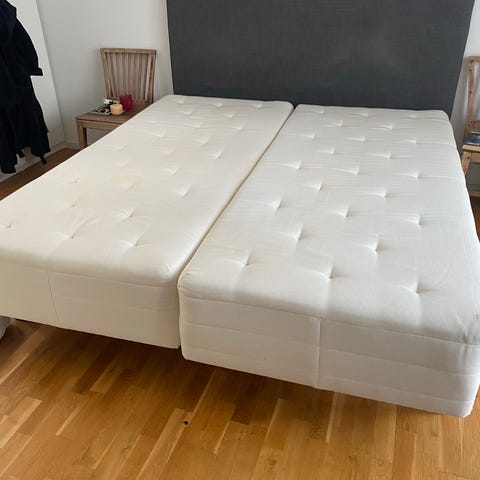 Dubbelsäng i ek/ekfaner.