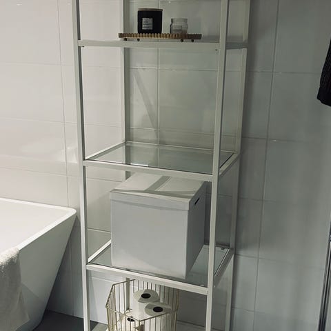En svart hylla från IKEA Vittsjö i metall och glas. Perfekt för förvaring! Hämtas snarast i Huddinge.