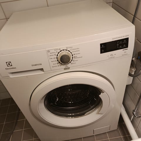 En välfungerande tvättmaskin som är kompakt och tar inte mycket plats. Passar bra i smala badrum då djupet är 40 cm.