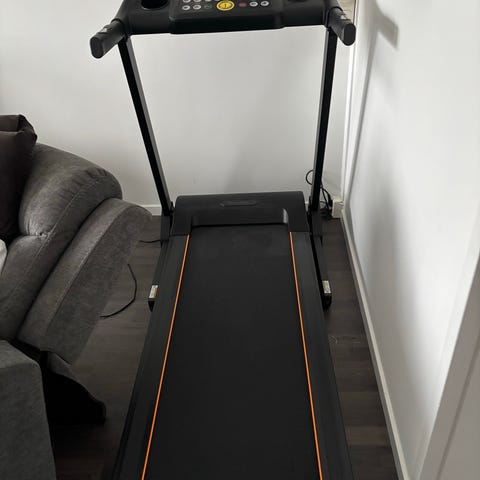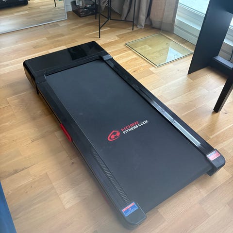 WalkingPad R1 Pro löpband i svart färg. Löpbandsyta och ram i robust material. Kompakt design med handtag och fjärrkontroll för enkel användning. Lämplig för hemmabruk och lättare träning.