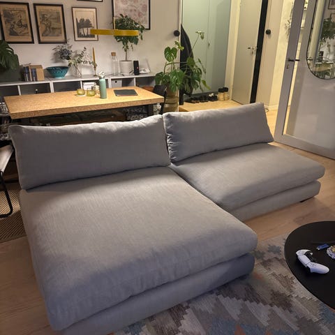 Soffan är sparsamt använd och i fint skick. Modulerna har varit inne på magasinering sen hösten 2023 och användes bara en kort tid efter inköpet 2022. De andra två modulerna har använts sparsamt sen dess.