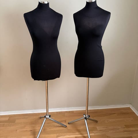 Diana justerbar skräddarbyst för dam i vinröd färg. Bysten justeras i flera delar för anpassning till olika storlekar och former. Den är monterad på ett stativ.