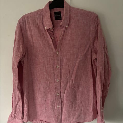 Grå jättefin snygg populär linne skjorta från Oscar Jacobson i M. En strykning så är den som ny och sparsamt använd! Grym passform och skick alltså!