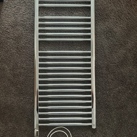 Handdukstork storlek 80cm hög och 45cm bred. Behöver kompletteras med elpatron eller termostat.