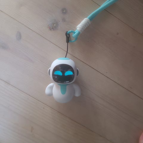 Robotdinosaurie i blå färg med rörliga delar och detaljer i silver. Leksaken är tillverkad i plast och har en futuristisk design med mekaniska inslag.