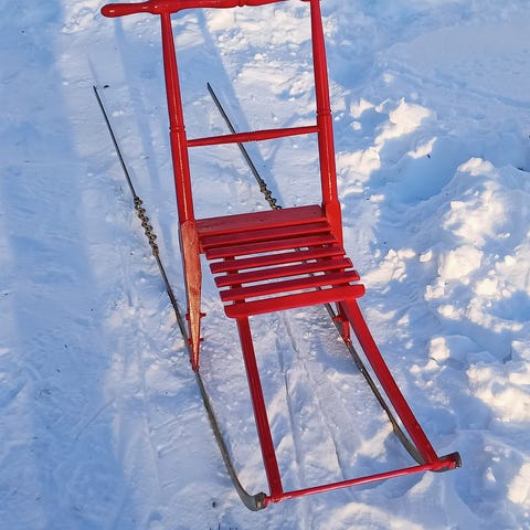 Riktigt gammal sparkstötting med järnskodda trämedar.