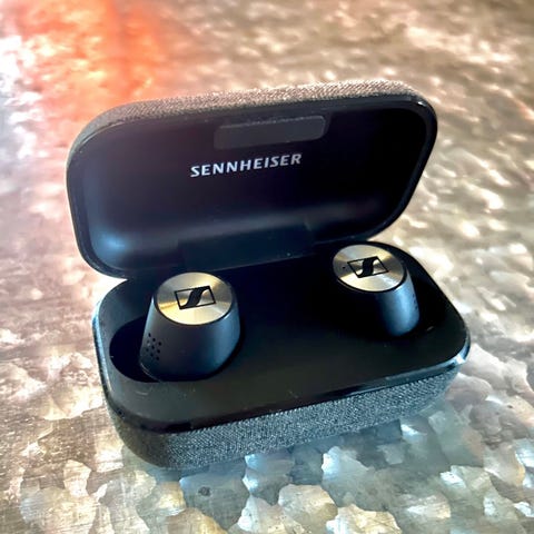 Sennheiser True Wireless hörlurar med trådlös anslutning och laddningsfodral.