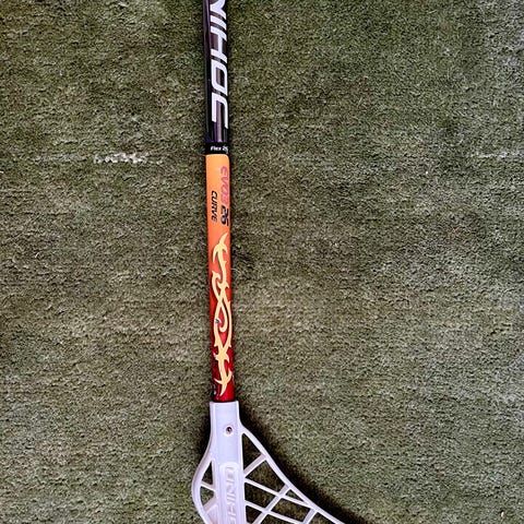 Unihoc Evo3 26 Curve innebandyklubba, orange. Klubba med specifika egenskaper för kontroll och precision.