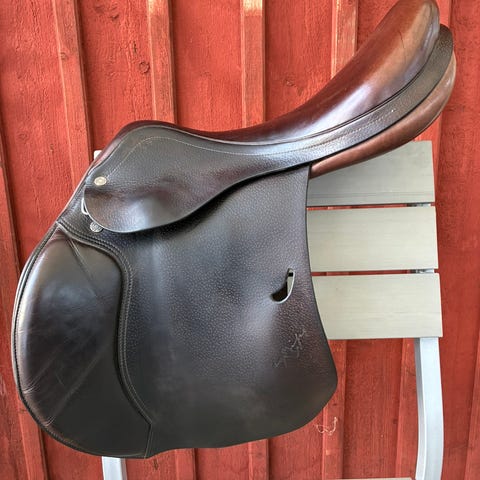 Jeffries hoppsadel, slitna stroppar på vänster sida, behöver ev stoppas om därav priset. Väldigt bekväm och välskött sadel.