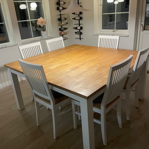 Bänkskiva vi haft som barbord. Finns vita konsoler till om det är av intresse. Mått 700 x 1430 mm