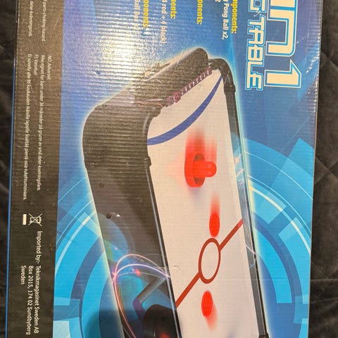 Stort elektroniskt 48" airhockeyspel med kraftfull fläkt, stabilt underrede, justerbara ben och elektronisk poängräknare.