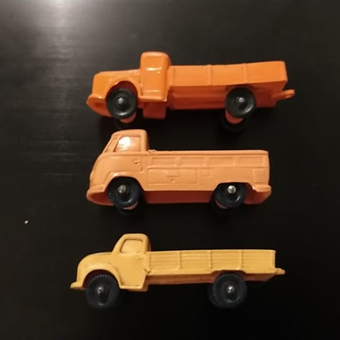 Leksaksbil i form av en lastbil tillverkad i metall. Färgen är röd och den har flera hjul. Passar som samlarobjekt eller leksak.kan skickas
