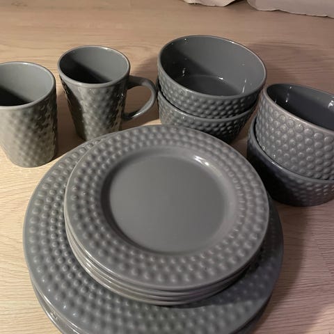 Zara Home servisdelar i svart färg. Inkluderar tallrikar och skålar i matchande design samt bestick.