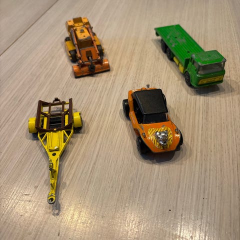 Matchbox Lastbil i gul färg. Modell med flera hjul och detaljerad design. Passar som samlarobjekt eller leksak.kan skickas