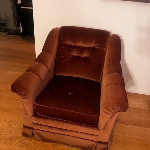 Fåtölj med rött tyg.