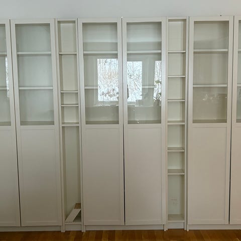 IKEA Billy vitrinskåp/väggskåp till salu. Moduler som visas på bifogade skärmdumpar. Demontering och upphämtning mellan Sunne och Lysvik. Ordinarie pris 7000 kr.