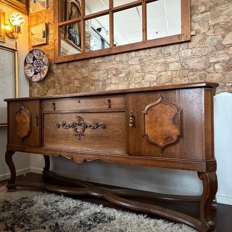 Skjenk 4 dørrar och 4 låder. mått B-D-H 190x45x88cm. Pris da vi kjøpte den var kr 12.700,- Ingen skader bortsett fra 3-4 små flyttmerker som man sikkert kan polere bort. Serveringsbord 4 låder. Mått L 83- H73-B49cm selges for kr 1100,- Jeg har også taklampe og 2 stk vegglamper. Kan diskutere pris på disse.