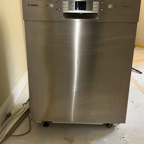 Bosch underbyggd diskmaskin. Diskmaskinen är avsedd för inbyggnad under köksbänken och har en rostfri yta. Den är anpassad för att integreras i köksmiljöer och erbjuder standardfunktioner för diskning.