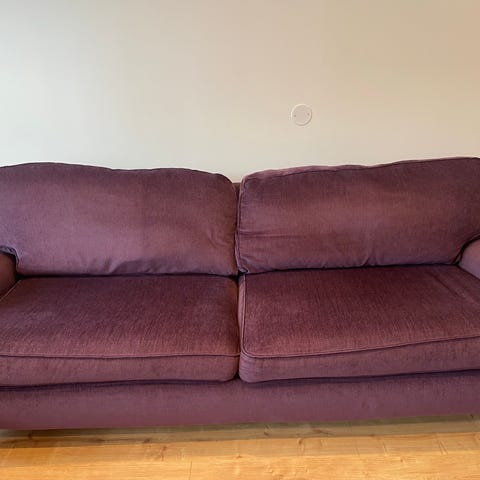 Säljer en Mio Oxford 3-sits Howardsoffa i fint skick. Soffan har rak sits och klassisk Howard-design med fina svarvade ben på hjul i krom.