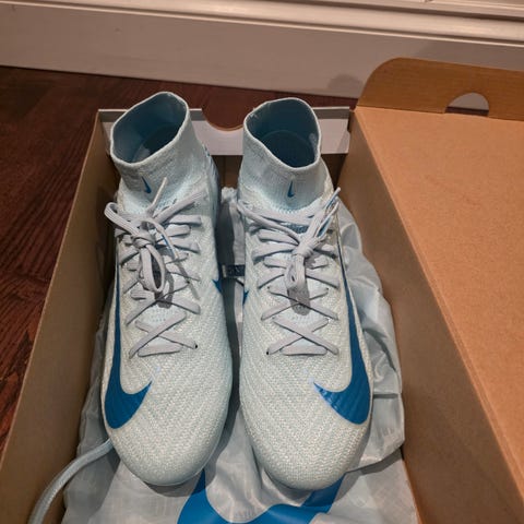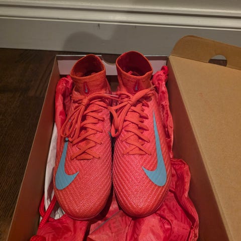 Helt nya, oanvända Nike Mercurial Superfly 10 Elite AG med högt skaft säljes. Skorna används för spel på konstgräs. Både påse och kartong ingår.