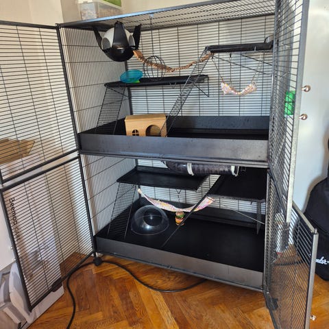Fågelbur med tillbehör