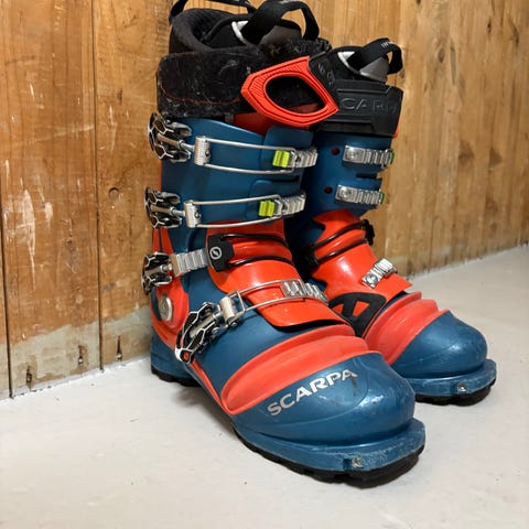 Scarpa T2. Storlek 43. I toppskick. Bara provad för storlek, har aldrig blivit åkta med. Liten repa på sidan av tån. Till och med klistermärket sitter kvar under. Tycker du att det är för dyrt så är du välkommen att prova med ett bud.