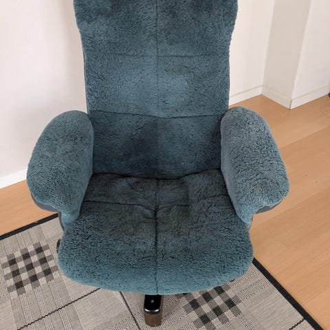 Fotöljen har en skada på fårskinnet som ni ser på sista bilden