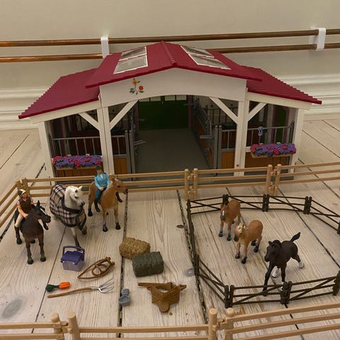Schleich hästar, många tillbehör - stallet på köpet!