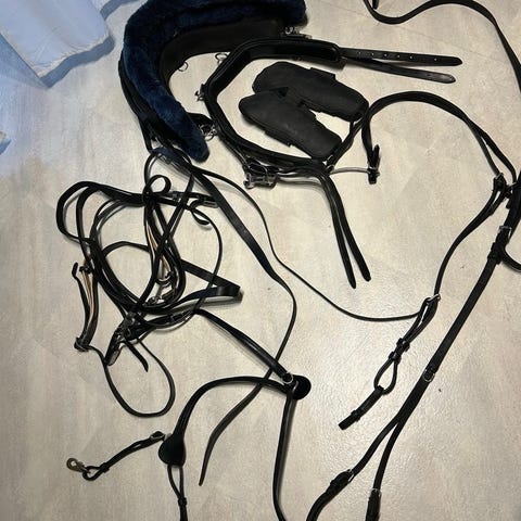 Amish sele med bågdäckel och ställbar collar, 61cm/24" max utspänd.