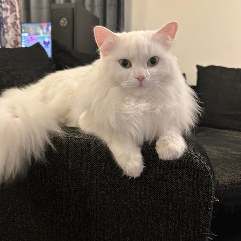 Nu söker vår fina honkatt ett nytt, kärleksfullt hem. Hon är en väldigt mysig katt som gärna kommer upp själv och lägger sig nära för att gosa. Hon tycker om närhet och sällskap, men är samtidigt nyfiken och lekfull.