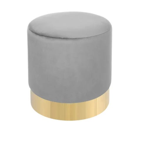 Sittpuff i rosa sammet och gulddetalj från Hemtex. Puffen är fin som inredningsdetalj eller fotstöd till soffa. Även bekväm att sitta på. Stabil konstruktion. 40cm i diameter och 40 cm hög.