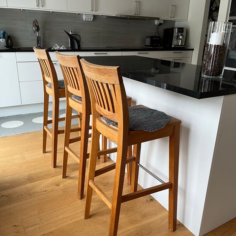 Komplett möbelset i ek/svart – tv-bänk, bord & barstolar