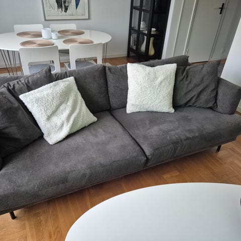 3-sits soffa från Mio modell Harper med tillhörande fotpall. Jättefint skick och varsamt använd. Tyg jump antracit