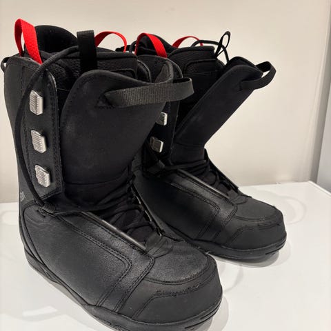 Salomon Echlon snowboardboots i storlek 43,5. Svarta med Thermicfit-teknik för anpassad passform och komfort vid snowboardåkning. Flex 4, mjuka och sköna. Har några år på nacken men väldigt sparsamt använda.