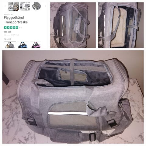 Jag har använt väskan till min katt men nu vid en lång flytt utomlands vill jag ha en mer rymlig bur för honom. Passar för katter och mindre hundar