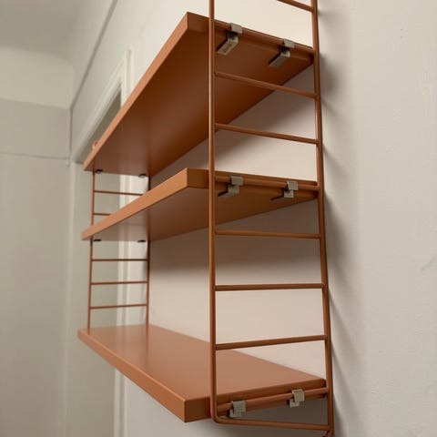 Ljusrosa stringhylla pocket ljusrosa. Den har tre hyllplan. Fint skick!