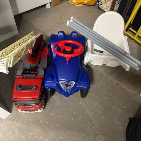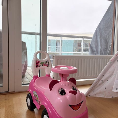 För små barn som inte lärt sig gå. Att sparka omkring på eller gå bakom och hålla sig i ryggstödet för att lära sig gå. Det går att vrida på nyckeln, röra växelspaken, gasa så det låter etc. Och förvaring under sitsen.
