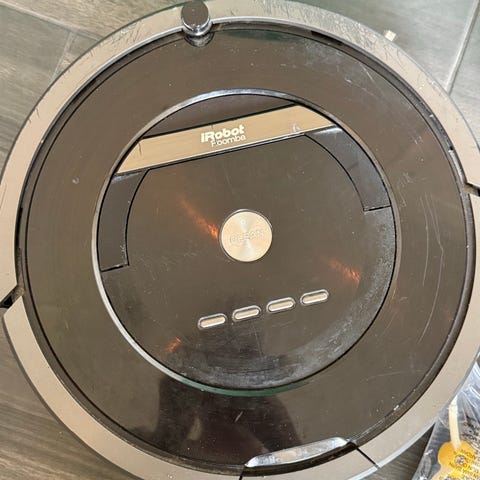 iRobot Roomba robotdammsugare i svart färg. Enheten är designad för automatiserad golvrengöring och kan användas i hemmet för att underlätta städning.