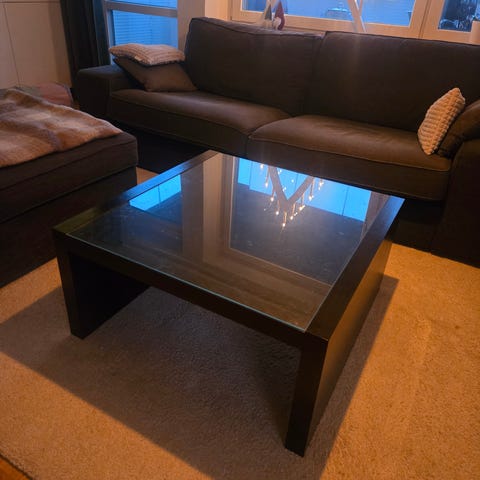 stilrent runt soffbord med glasskiva och kromat metallunderrede. Modern, tidlös design som passar de flesta vardagsrum. Stabil konstruktion och hel glasskiva utan sprickor.