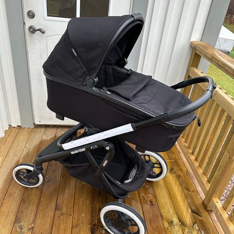 En smidig barnvagn från Maxi-Cosi. Köpt begagnad under våren 2024, så sparsamt använd av oss. Finns några små repor i chassit men annars i fint skick.
