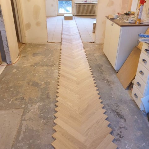 Tarkett Salsa ek golvbrädor med tjocklek på 14 mm. 192x2272 mm, Tor 8,2 kvm.