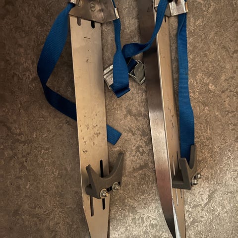 Långfärdsskridskor i fint skick 540 mm. Passar på olika typ av sko/ känga.