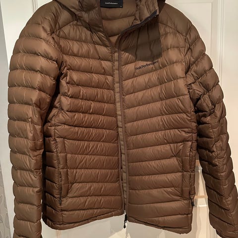 Peak Performance jacka med dragkedja fram och dragkedja på fickorna. Jackan har ett quiltat mönster.