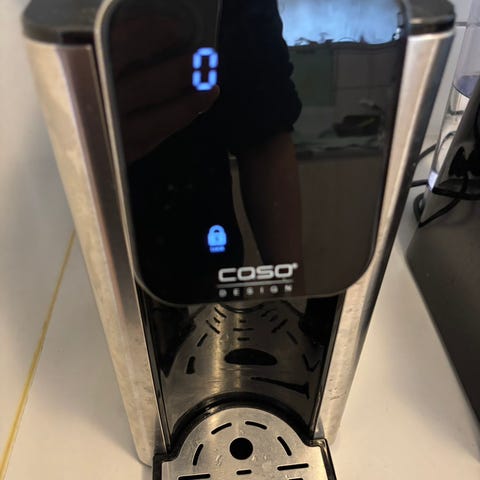 Vattenbehållare i rostfritt stål med tryckpumpfunktion. Lämplig för att hålla och servera drycker. Robust konstruktion och enkel att använda.
