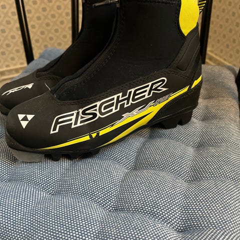 Fischer kombi junior skidpjäxor i svart och gul färg. Storlek 37.