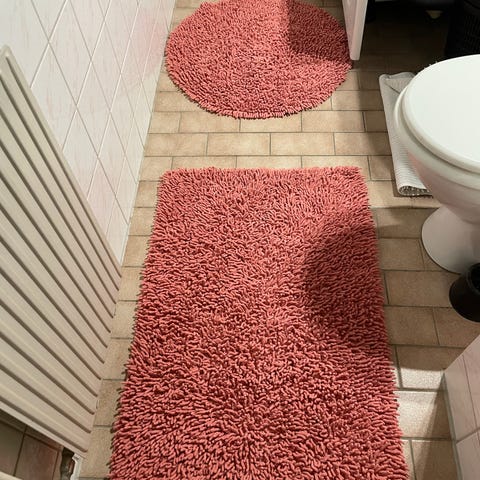 Bathroom mat from IKEA: https://www.ikea.com/se/sv/p/backmara-badrumsmatta-moerk-grabla-30605588/#content