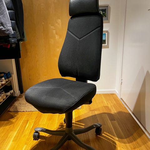 Säljer en mycket bekväm och stabil kontorsstol från Kinnarps, ett svenskt kvalitetsmärke för professionella arbetsplatser. Stolen är av hög ergonomisk klass och passar perfekt för både hemmakontor och kontor med långa arbetsdagar.