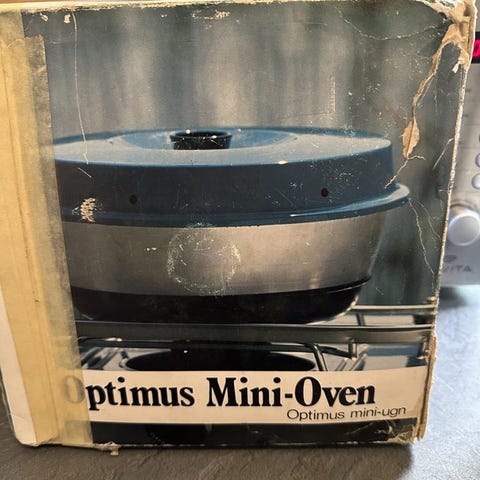 Äldre Omnia campingugn i originallåda. Fint skick,knappt använd. Finns dock en bula i det röda locket.