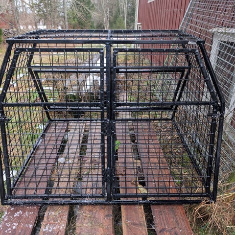 Den stora fördelen att köpa begagnat är att buren är ihopmonterad! Den är inte helt krångelfri att montera ihop. Dock är sidoväggen nedmonterad så det får man fixa med själv.