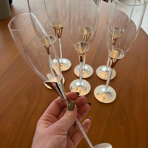 Säljer 2 st jättefina Swarovski crystalline champagneglas med silverdetaljer.